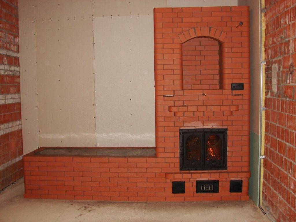 - шведка, имеющая лежанку – такая печь имеет более сложную конструкцию, но зато она может выполнять в зимнее время функцию теплой кровати.