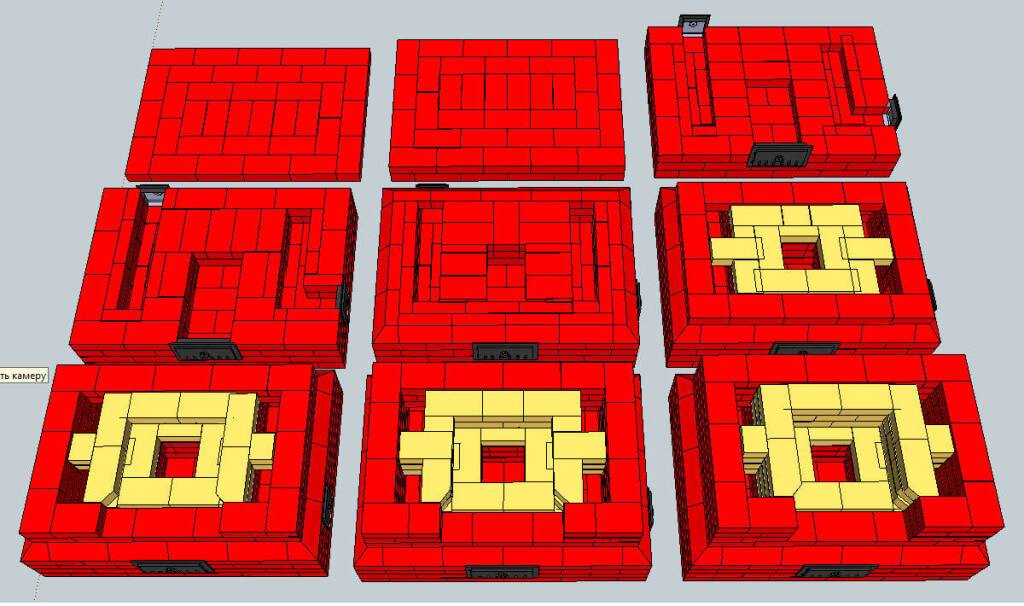 Прежде всего необходимо изготовить фундамент под печь. После этого начинается кладка по порядовке (изображения выше).