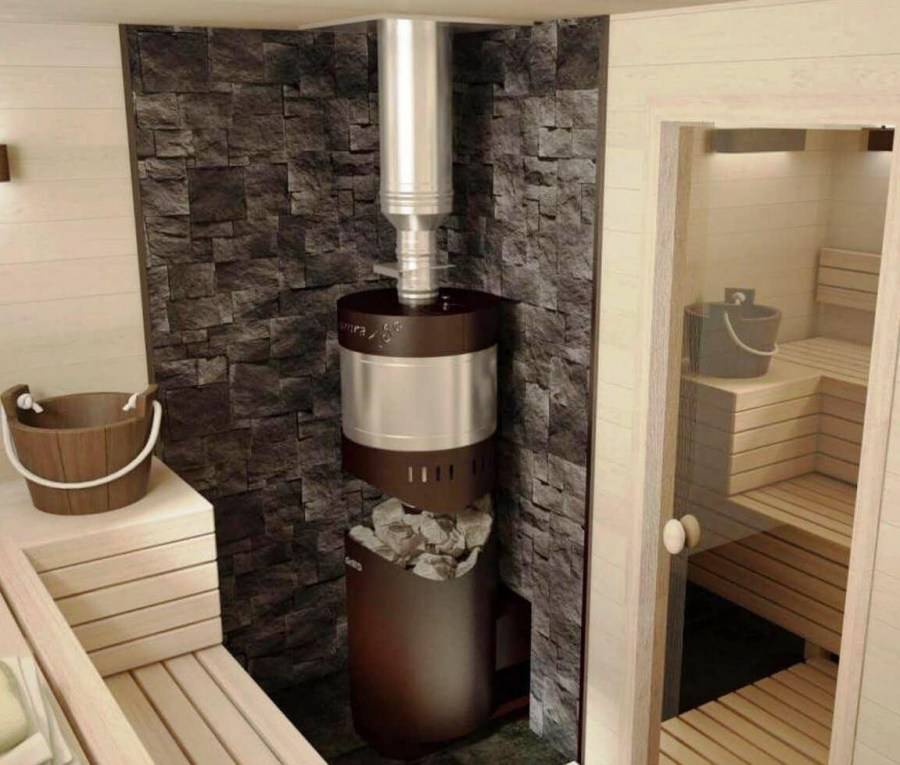 После подбора по функционалу и мощности, переходят к выбору по типу каменки, наличию встроенного водонагревательного бака и принципу работы: