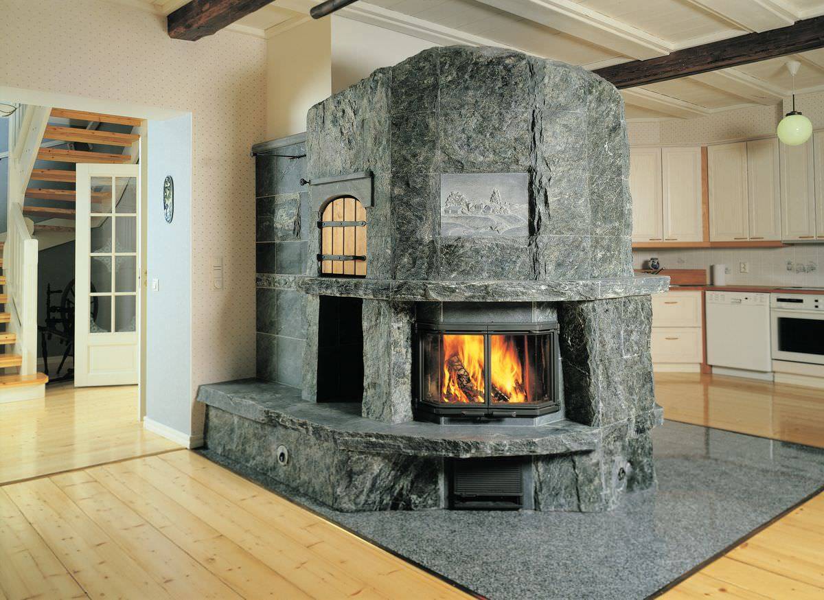 - Высококачественный природный камень, применяемый для изготовления финских каминных печей, при нагреве не выделяет вредные вещества, поэтому безопасен для здоровья.
