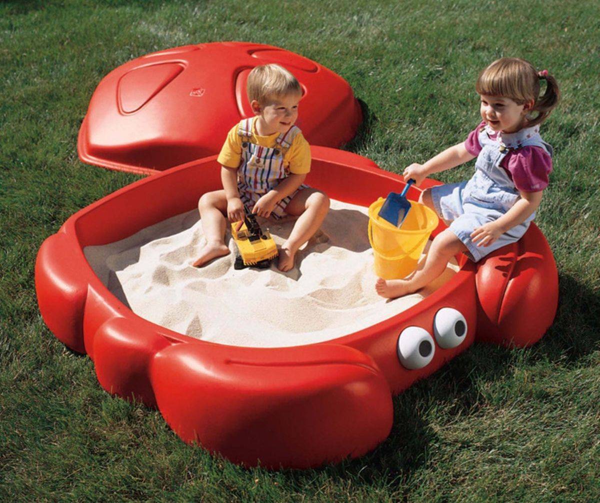 Сегодня всё чаще можно встретить песочницу с крышкой. Это может быть съёмная крышка, которую нужно будет каждый раз снимать, а затем надевать, или распашная. Она будет защищать песочницу от дождя, осыпающихся листьев и нежелательных визитов окрестных котиков и собачек, норовящих превратить песочницу в туалет. Да и на зиму оставить песочницу закрытой намного удобней — не придётся весной чистить от мусора. Интересный вариант — песочница с крышкой, трансформирующейся в скамейку или столик. Она не только функциональна, но и удобна. Ребёнок во время игры может сидеть на ней, а не на песке и закрывать её намного легче, чем цельную.