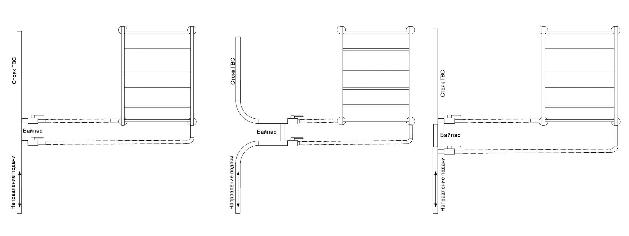 Типовые схемы включения полотенцесушителей
