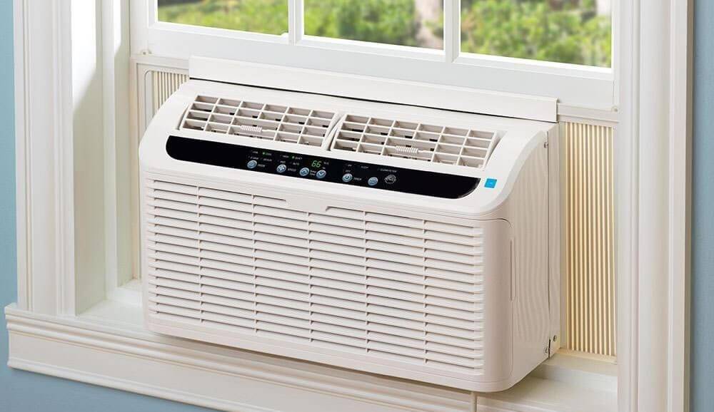Такие агрегаты бывают напольными и оконными. Оконные моноблоки встраиваются в оконный проем, что часто требует установки специальной створки под размер кондиционера.