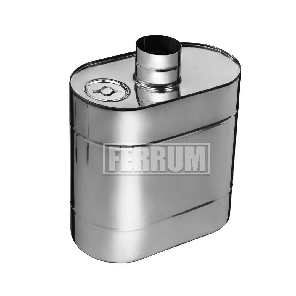 По материалу исполнения бак на трубу для бани может иметь только два варианта. Это обычная сталь с антикоррозийной защитой (эмалированная) и нержавеющая. Вторая — предпочтительнее, хотя и значительно дороже.