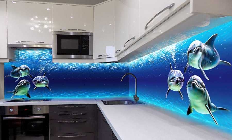 - Скинали – стеклянные панели с декоративной подложкой, то есть с изображением – пленочным виниловым, с фотопечатью или стереопечатью. Фотопечать удорожает изделие на 30-50%, а стереопечать стоит вдвое дороже.