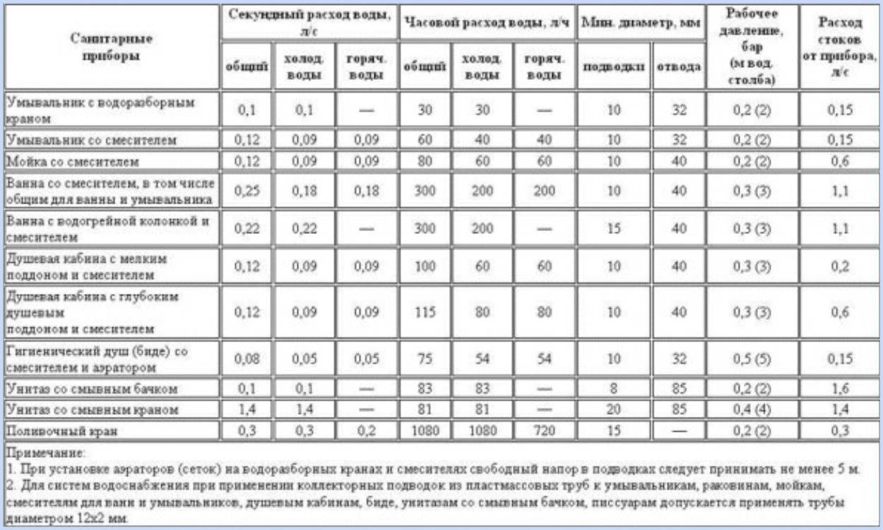 Рис. 13 Таблица потребления воды сантехническими приборами