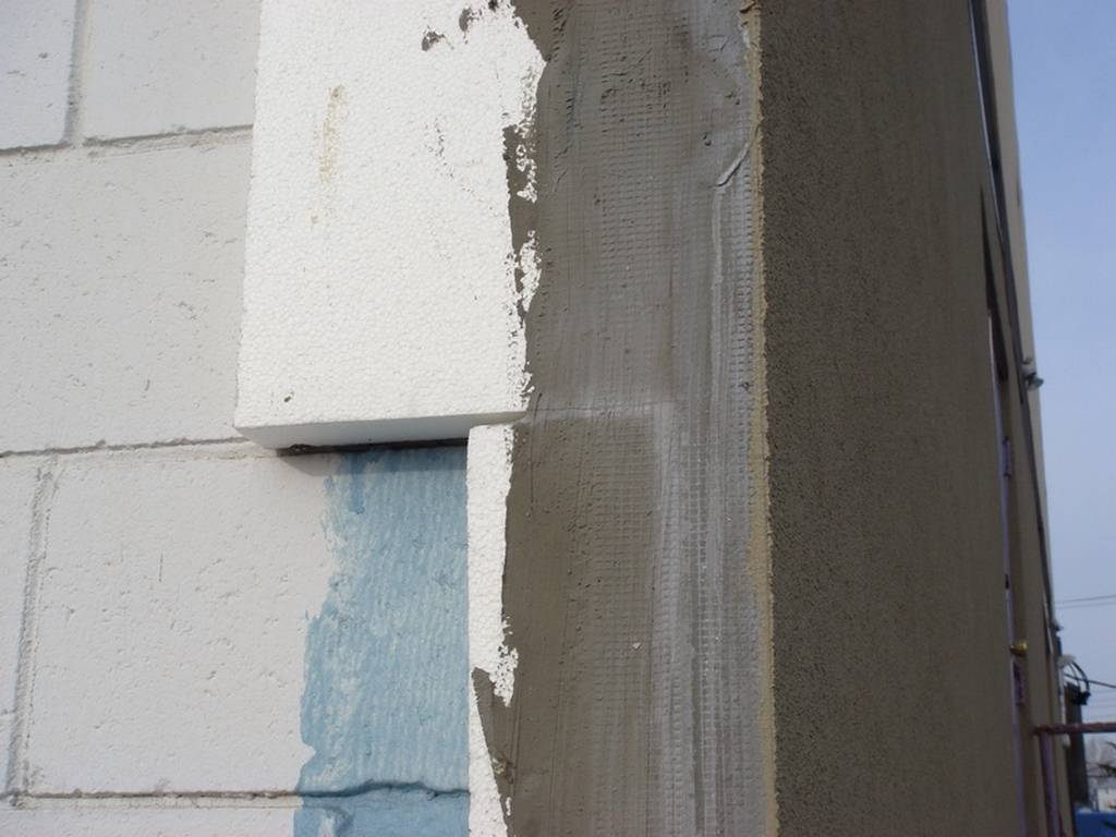 На монтаже блоков пенополистирола процесс утепления стен снаружи не завершается – материал необходимо защитить при помощи армирующей сетки и штукатурной смеси.