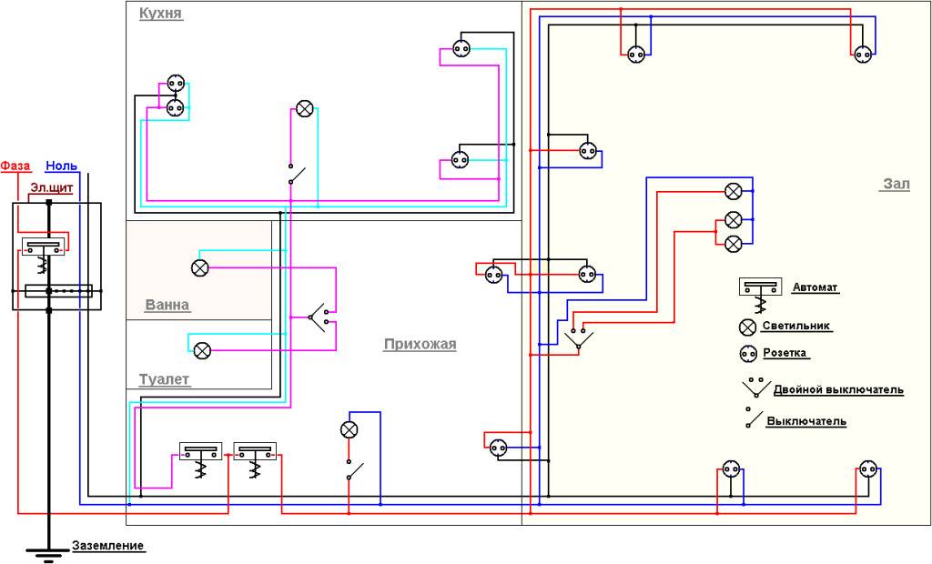Схема электропроводки однокомнатной квартиры с электроплитой