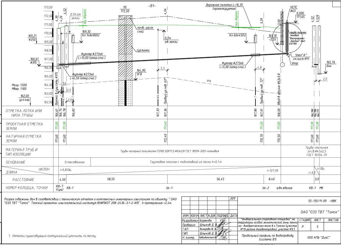 В данной части проекта запроектирован участок водопроводной линии: