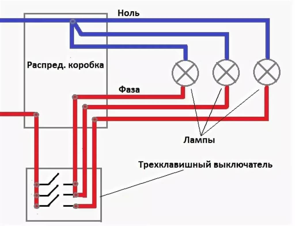 Двух- и трехклавишные модели подключаются аналогично. В итоге нажатием нужной клавиши, ток пускается по указанному кабелю, зажигая конкретный источник света.