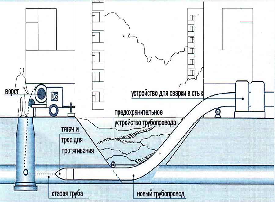 Бестраншейный вариант прокладки водопровода имеет три разновидности: