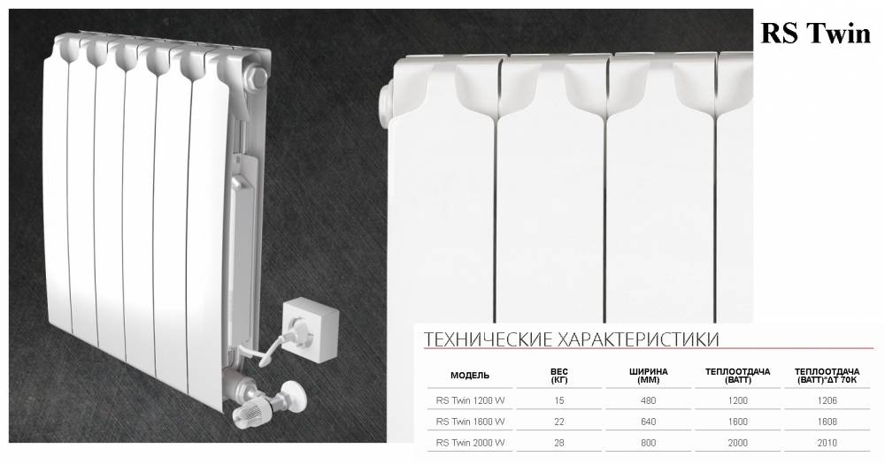 RS-Twin — частично биметаллический радиатор, который при необходимости может работать от электричества