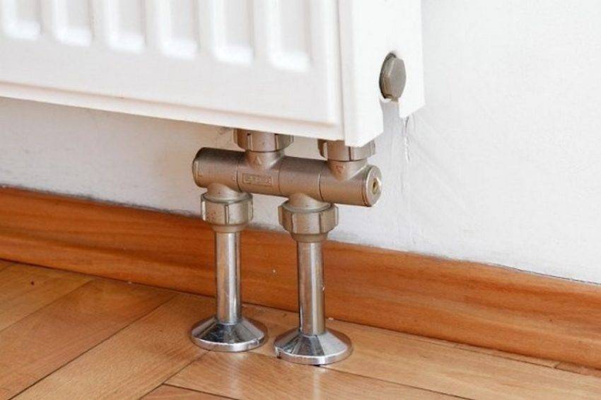 Следующий вид подключения является наименее эффективным и характеризуется низким КПД. Это радиаторы с нижним подключением. Применение этого способа осуществляется для систем отопления, находящихся под полом.