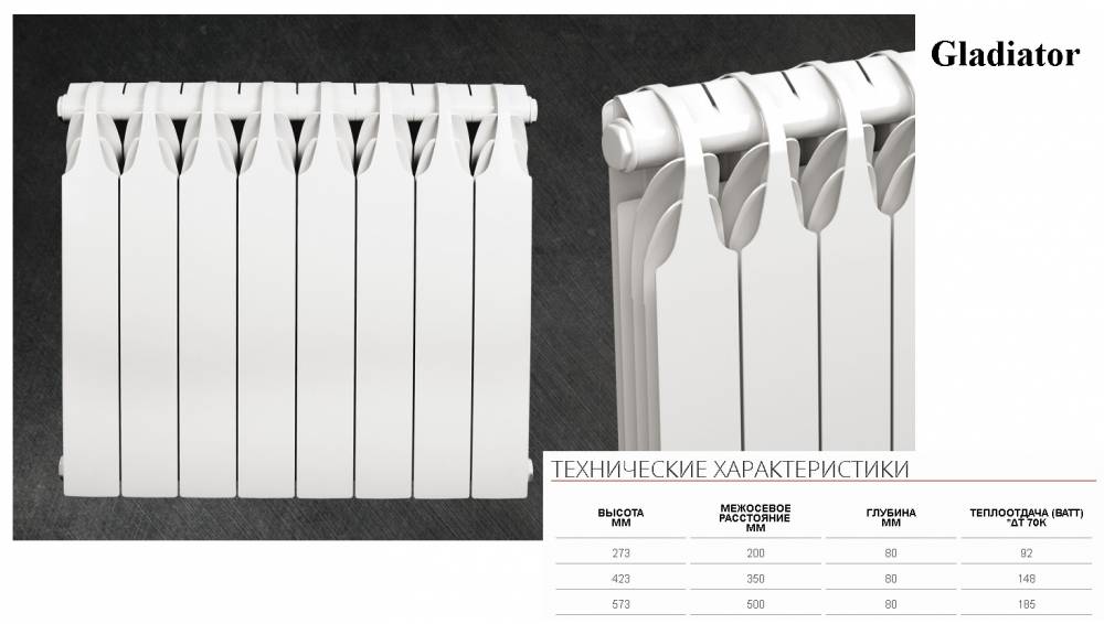 Серия отличается оригинальным дизайном. Модели обладают привлекательным внешним видом, так что Gladiator украсит любую квартиру или офис. Минимальная ширина корпуса всего 20 см, что позволяет размещать радиаторы под низкими подоконниками. Максимальное межосевое расстояние равно 50 см у модели «Гладиатор 500».