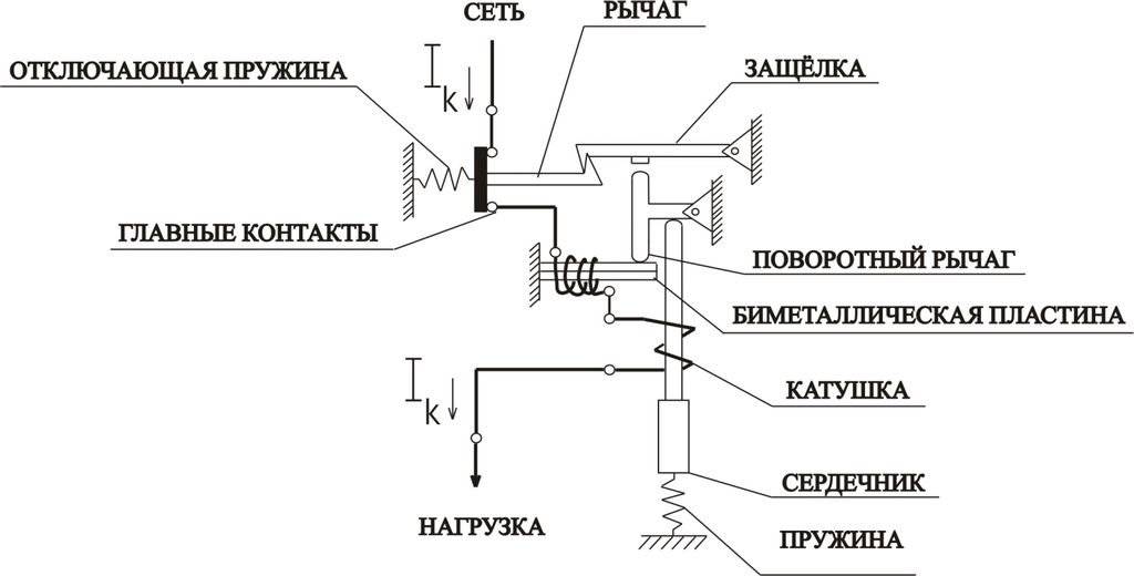 Автоматический выключатель при коротком замыкании срабатывает практически моментально благодаря электромагнитному расщепителю. При определённом превышении номинального значения тока нагревающаяся биметаллическая пластина отключит напряжение спустя некоторое время, которое можно узнать из графика время токовой характеристики.