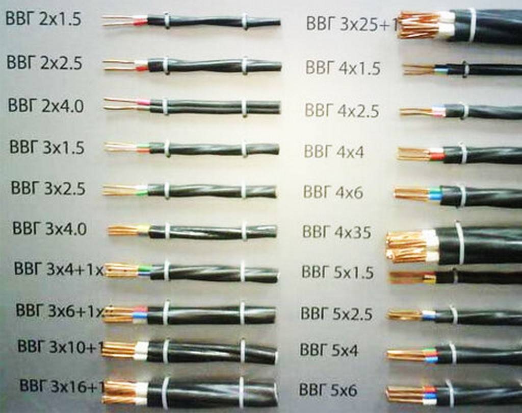 Квартирная проводка монтируется при помощи кабелей ВВГ-нг и ВВГ. Первый не подвергается возгораниям, предназначен для внутренних, земельных и наружных работ. Материал выпускается с 2-4 жилами, с сечением каждой от 1,5 до 35 мм2.