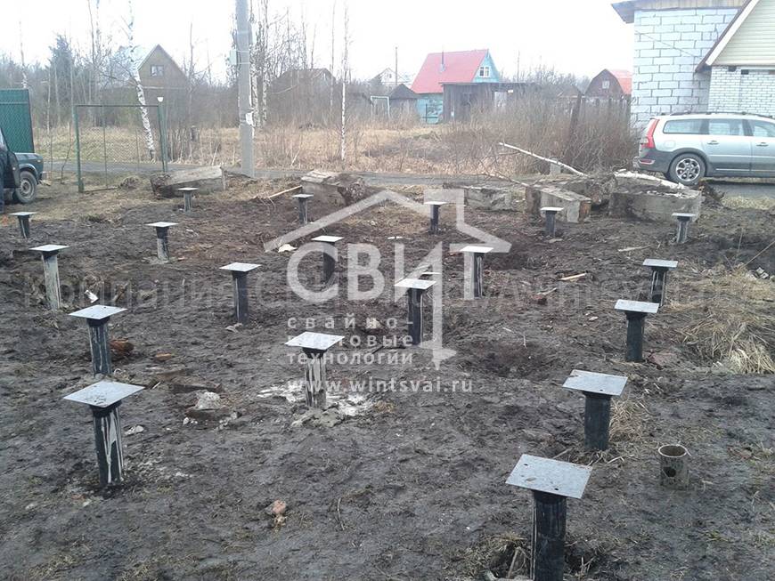 - остальное пространство заполнить винтовыми сваями с учетом расстояния в 2 или 3 метра;