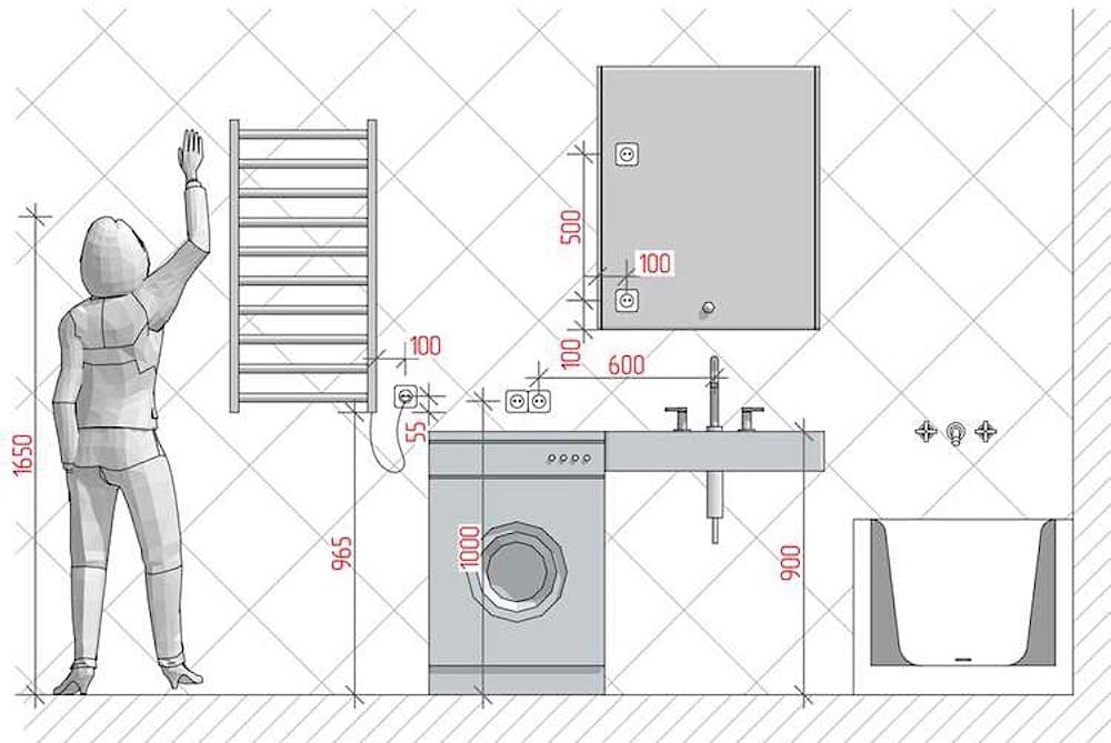 Рекомендуемая высота установки розеток и выключателей в ванной