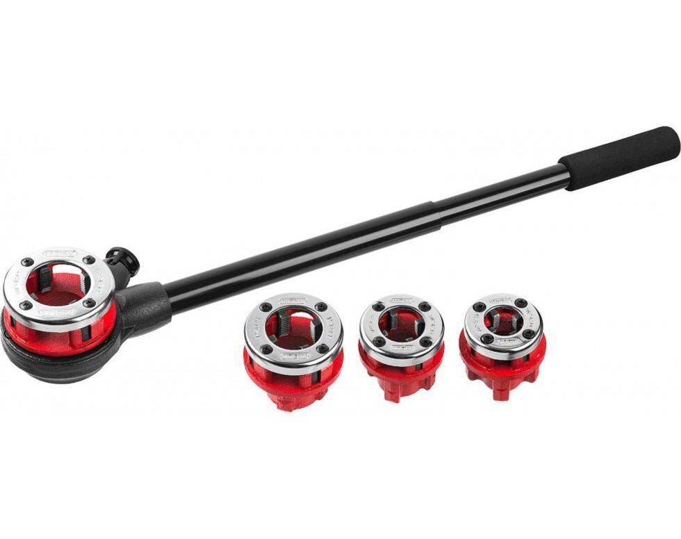 ![]() | трещоточный клупп с плашкой необходимого диаметра для нарезания резьбы на стальных трубах |