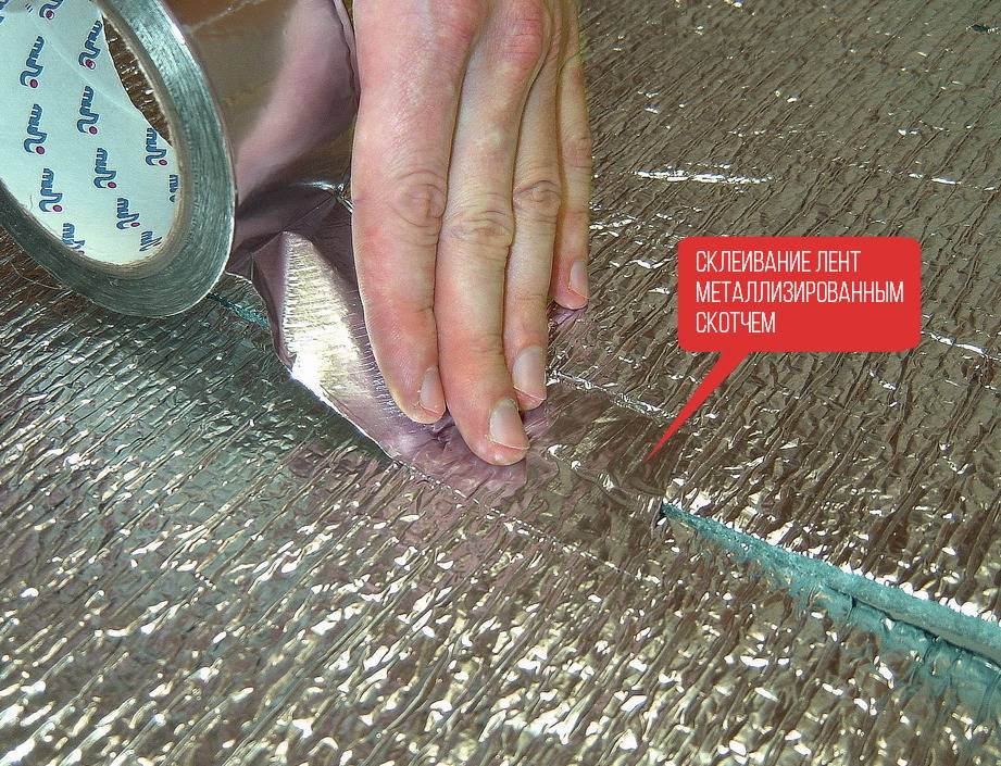 Ленточный самоклеющийся материал Это интересно: Только фольгированный самоклеющийся утеплитель отражает наружу тепловую энергию в теплое время года, а пир отрицательных температурах задерживает тепловую энергию в доме. Для сравнения: традиционные утеплители имеют такой эффект только в 3%-ном объеме от фольгированных самоклеек. Если самоклеящиеся материалы используются для наружного утепления, то сначала рекомендуется наклеить на поверхность перфорированный пленочный материал, чтобы избежать намокания обрешетки или каркаса при образовании пара от влаги, содержащейся в воздухе.