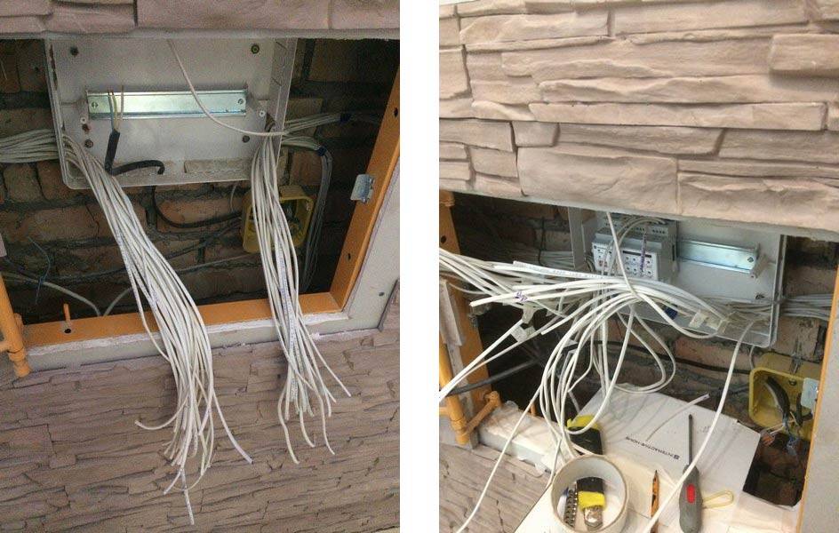 - Можно обойтись без распредкоробки для соединения проводов и все жилы завести прямо в короб датчика, если внутри достаточно просторно и есть собственный клеммник. Фазу-ноль с одного кабеля подали, а с другого фазу-ноль вывели.