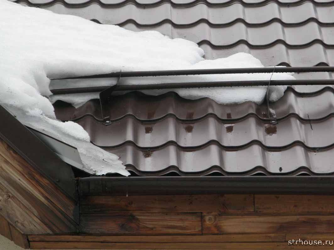 Само бревно находится на высоте 20 — 30 мм над поверхностью кровли. Поэтому таящий снег легко может стекать к водостокам. Оставшийся снег удерживается на время таяния.