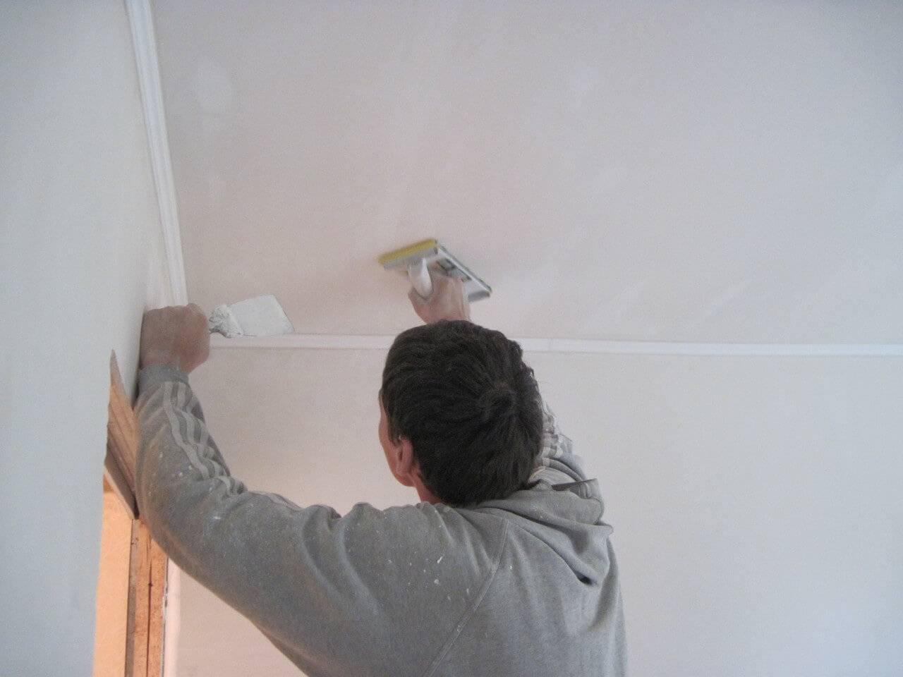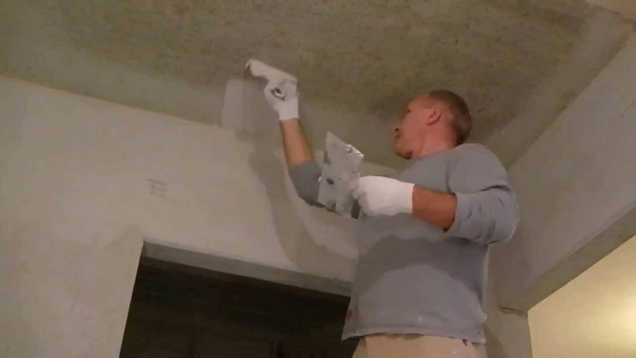 Для нанесения стартовой шпаклевки на потолок нам необходимо ее приготовить.