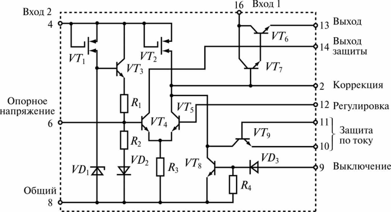 Стабилизационные устройства на ИМС обеспечиваются встроенными схемами, ограничивающими выходной ток, а также схемой защиты от перегрузок по температуре.
