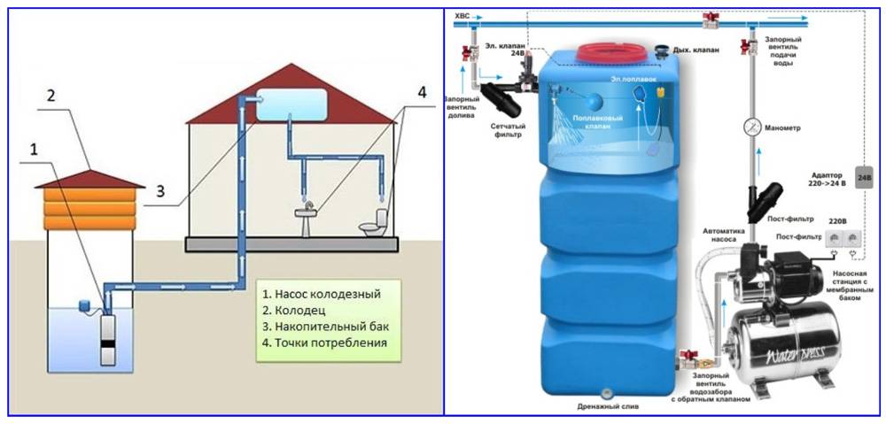 Рис. 3 Системы водообеспечения с накопительной емкостью