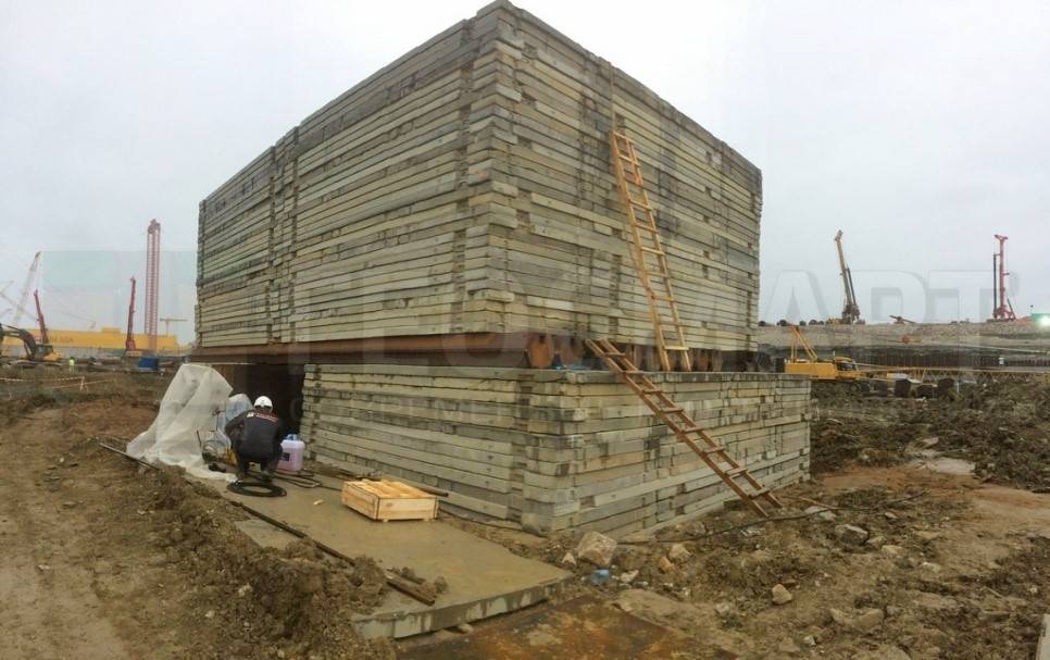 Все действия выполняются оборудованием для строительства фундаментов свайного типа (молотом).