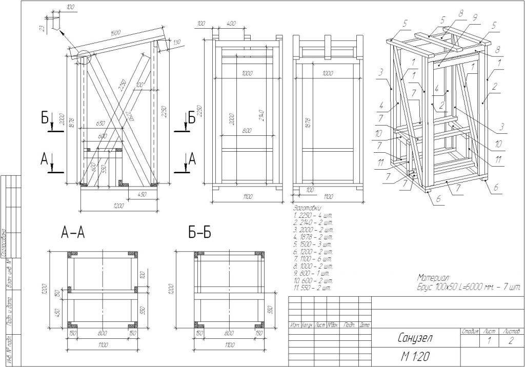 Чертежи туалетной кабинки