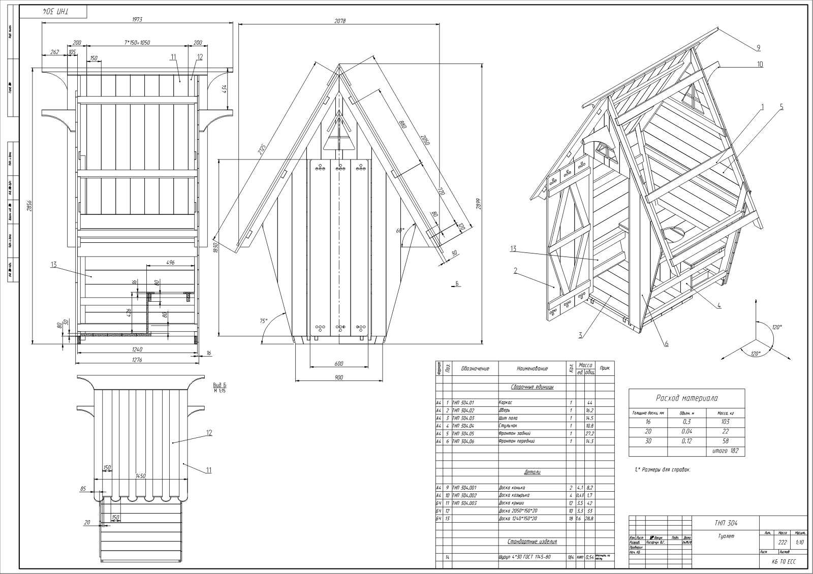 Проект дачного туалета из дерева типа Скворечник