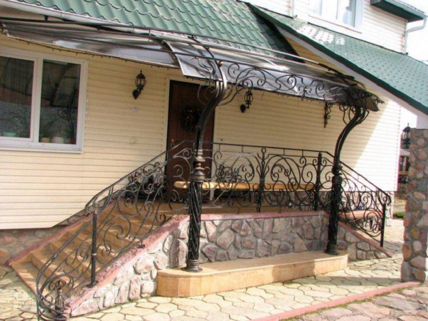 Поликарбонатный козырёк, украшенный металлическими элементами
