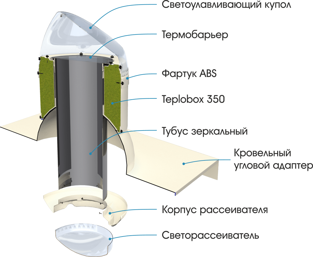 Интересно, что даже при устройстве подземного гаража или его расположении под основной частью дома (другого здания) организовать дневное освещение вполне реально: потребуется только увеличить длину световода.