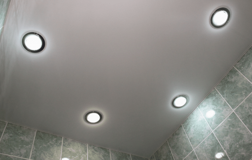 Потолочный монтаж. Традиционно самыми распространенными являются источники света, расположенные на потолке. Именно с них начинают выбор вариантов освещения ванной комнаты. По способу установки потолочные светильники подразделяют на накладные, встроенные и подвесные.