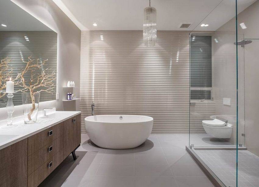 Подвесные светильники и люстры уместны только при большой высоте потолка и просторной ванной комнате. Некоторые модели позволяют изменять высоту установки во время эксплуатации.
