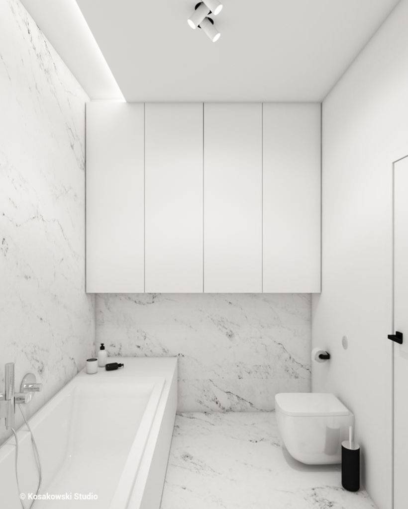 Однако в небольших, тесных ванных комнатах лучше делать ставку на нейтральный светлый цвет (т. е. белый свет, воспринимаемый как «между» теплым желтоватым и холодным голубоватым). Маленькие ванные комнаты, освещенные нейтральным или даже прохладным цветом, обычно кажутся более просторными (и — субъективно — более гигиеничными).