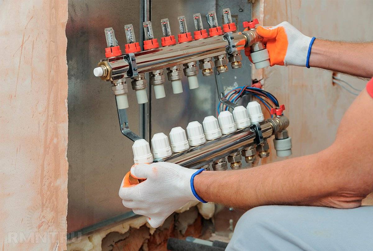 Чтобы иметь возможность отключить гребёнку, на входной и обратной трубе устанавливают вентили. Краны врезают и на каждом патрубке подающего и обратного коллектора. Для регулирования наполнения водяного контура устанавливают ротаметры. Автоматика, которая регулирует температуру жидкости, установлена в котле.