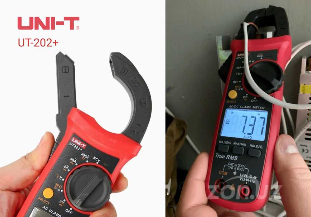 Среди проводов нужно выбрать тот, с которого планируется снять показания. На регуляторе выставить нужное значение. Если измеряется переменный ток, то это будет «А~». Есть модели, на корпусе которых «А~» маркируется в нескольких значениях, например UT201+ и UT202+. Если предполагаемая сила тока неизвестна, то начать измерения надо с самого большого значения.