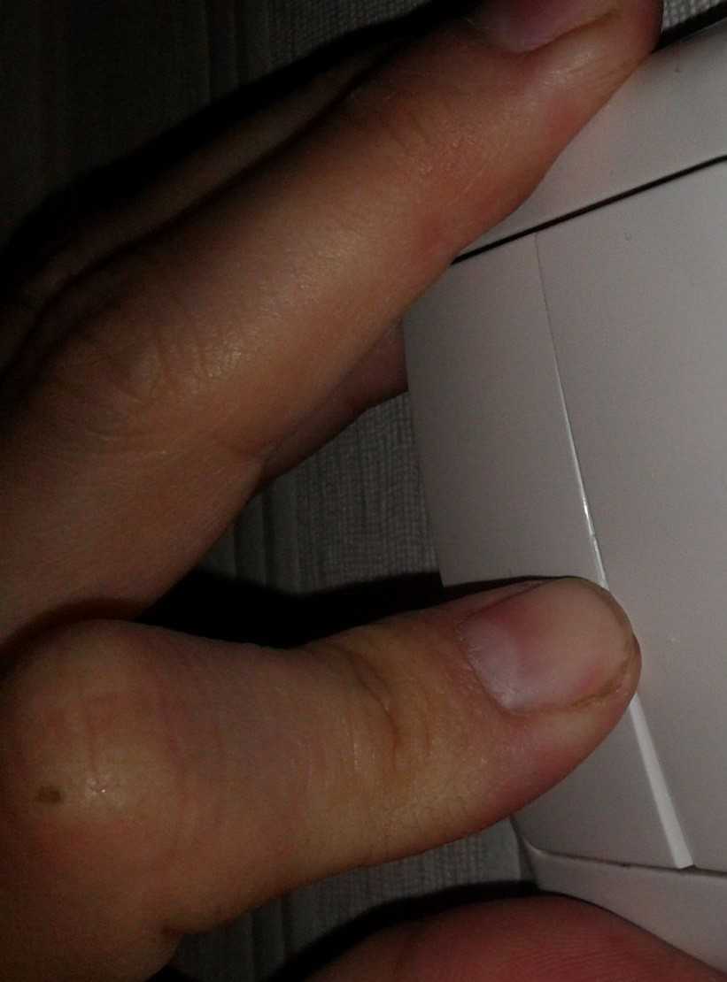 - Снимаем старый выключатель. Вначале демонтируем кнопки, затем рамку, а после этого откручиваем винты и достаем выключатель из стены. Высвобождаем провода, после того как слегка ослабили контактные крепления.