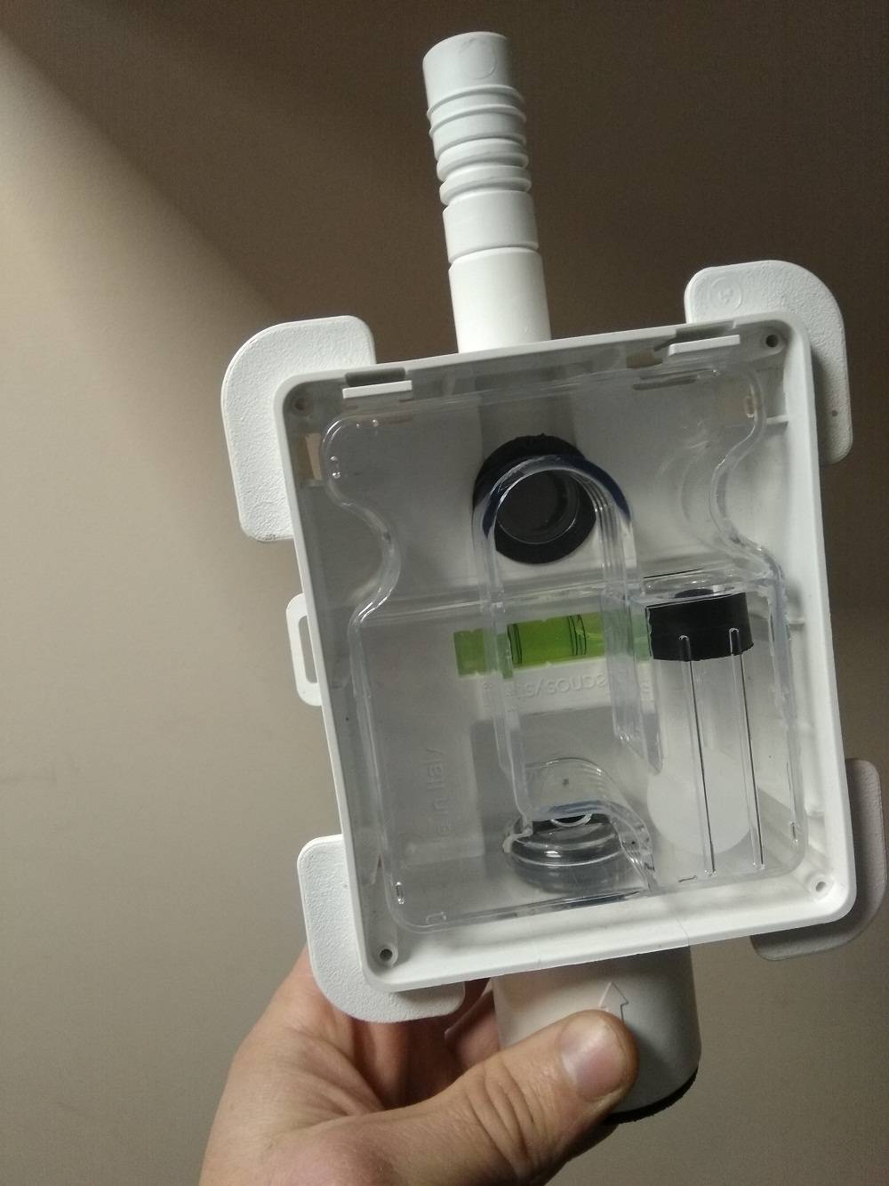 Сверху на отверстие манжеты опускается теннисный шарик. Нижняя часть трубы вставляется в канализационную трубу, а в верхнее отверстие вставляется шланг, отводящий конденсат из кондиционера. Принцип действия такого сухого гидрозатвора заключается в следующем.