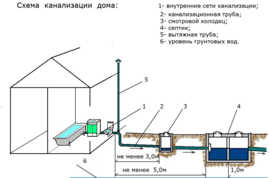 Схема канализации для туалета в бане с септиком и вентиляцией