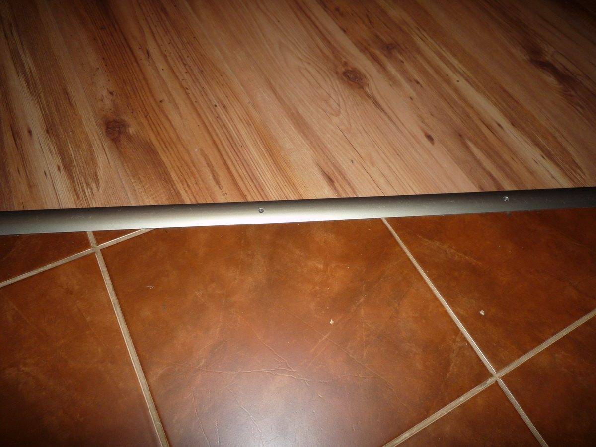 - Как оформить стык между паркетной доской и плиткой? Алюминиевым порожком достаточной ширины. Он может сохранить металлический блеск или быть окрашенным в произвольный цвет. При необходимости порожки для паркетной доски позволяют компенсировать перепад высоты между покрытиями;