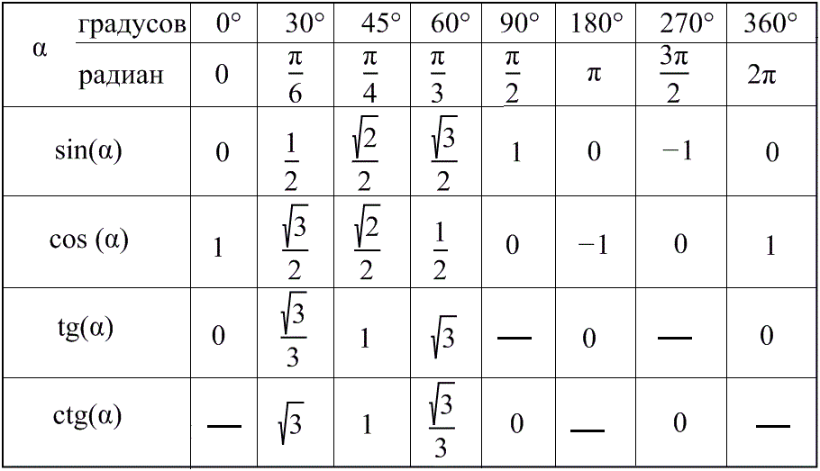 Таблица тангенсов