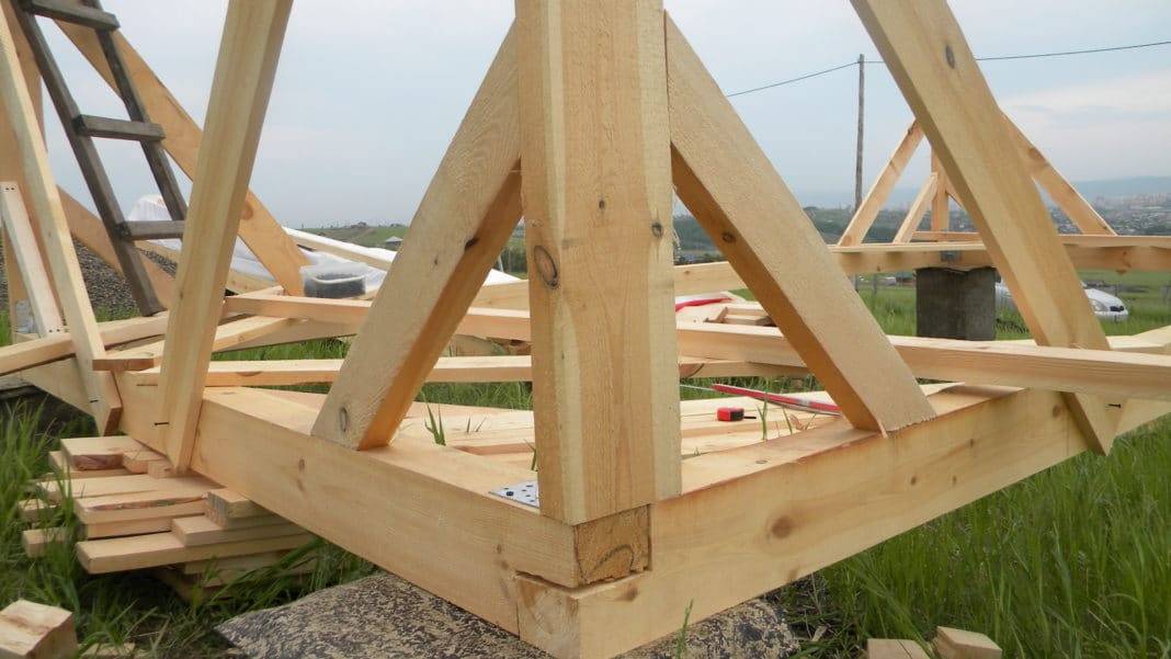 Применение более дорогих пород древесины и толстых брусков нецелесообразно. Поскольку и хвоя имеет достаточные для надёжности параметры. А если увеличить толщину детали, то это может привести к ослаблению всего каркаса. Потому что место соединения укосины с обвязкой запиливается. А более широкий паз уменьшит крепость.