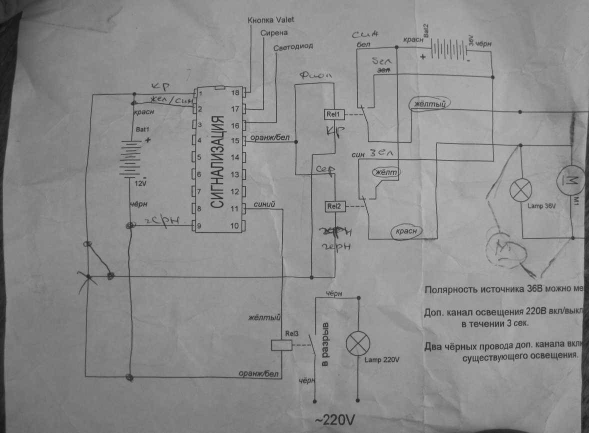 Схема подключения автомобильной сигнализации.