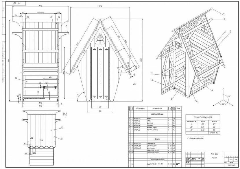 Для простой кабинки («скворечник») воспользуйтесь этим чертежом: