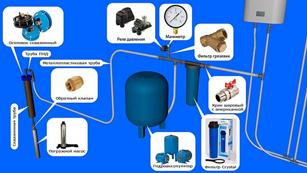 Схема водоснабжения частного дома из колодца с гидроаккумулятором