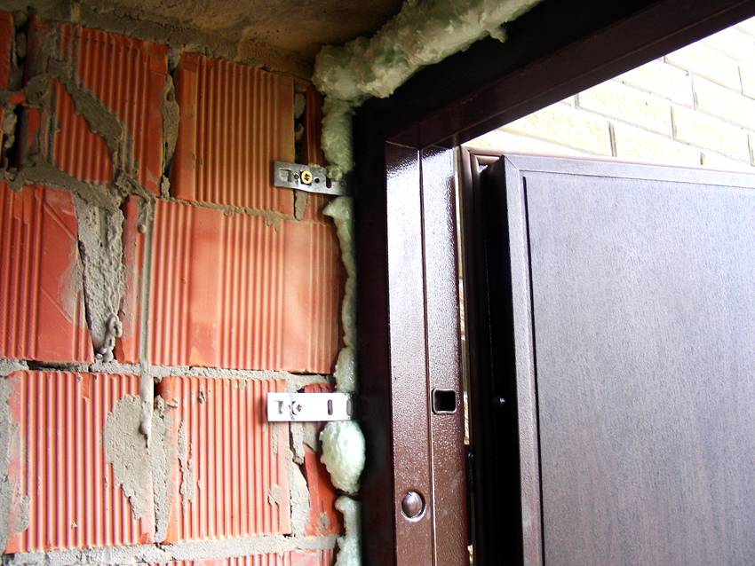 Убеждаемся в отсутствии люфтов при закрытом состоянии металлической двери. Если проблем нет, приступаем к заполнению зазоров между стенами и коробкой.