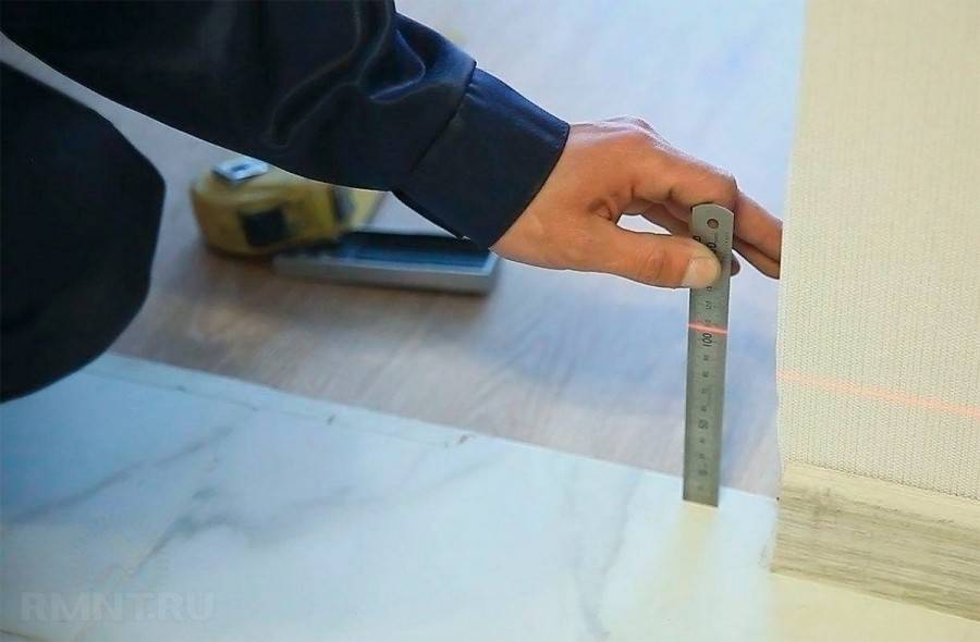 Перед тем как поставить межкомнатную дверь без порога самому, необходимо провести все работы по выравниванию стен, а также закончить отделку пола (положить линолеум, ламинат). Если коробку уже поставили, тогда полотно снимают, а наличники оклеивают скотчем.